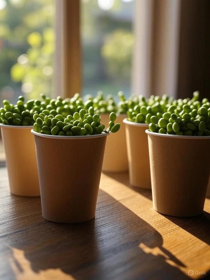 In the second cup, they were to say, “I want you to be at least 18 inches tall and produce thirty beans before you are finished.”